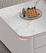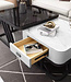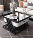 terwijl de kleinere tafel beschikt over een verfijnd Mystic White marmerlook blad van duurzaam MDF-hout.
