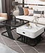 Deze exclusieve set van 2 salontafels combineert glas, marmerlook en metaal tot een elegant statement in iedere moderne woonkamer.