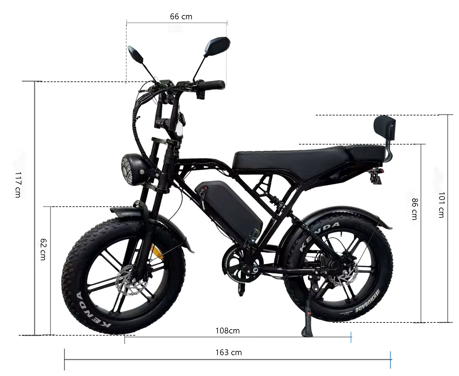 | Batterij: | 48V / 15–20Ah (uitneembaar met sleutel) |