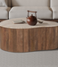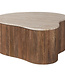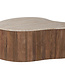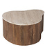 Salontafel Japandi 'Paul' 83 cm combineert warm mango hout met een beige travertin blad. Organische ..