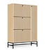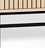 Moderne schoenenkast in eikenlook met lamellenfront en zwart stalen onderstel. Met 3 klep-lades berg je schoenen netjes uit het zicht op. Lees meer..