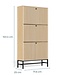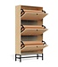 Moderne schoenenkast in eikenlook met lamellenfront en zwart stalen onderstel. Met 3 klep-lagen berg je schoenen netjes uit het zicht op. Lees meer..