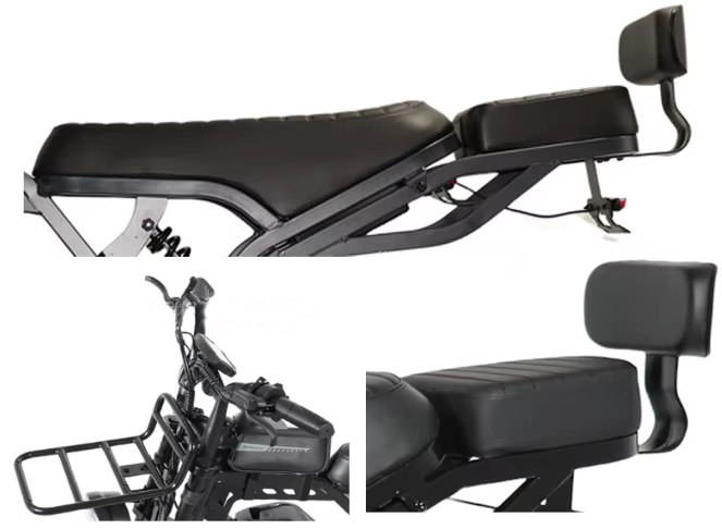Zadel: | Verlengd + rugleuning + voetsteunen |